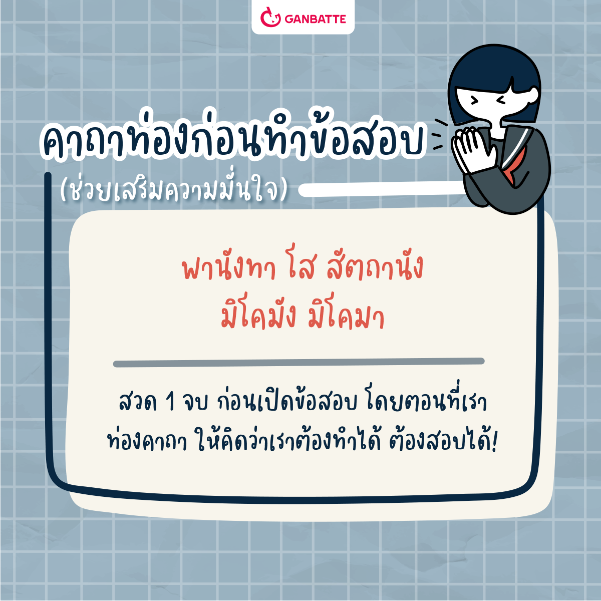 นอกจากจะต้องเตรียมตัวทำโจทย์และอ่านเนื้อหาให้ครบถ้วนก่อนสอบแล้ว การเตรียมใจก็สำคัญไม่แพ้กันค่า