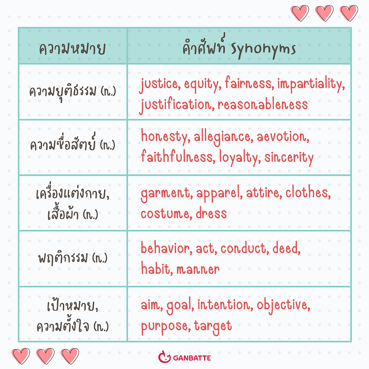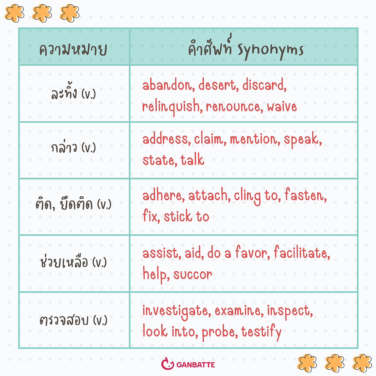 มาท่องศัพท์ไปพร้อมๆ กับพี่กัมบัตเตะกันค่ะ