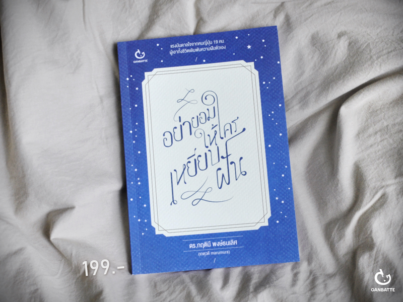 สั่งซื้อหนังสือ “อย่ายอมให้ใครเหยียบฝัน” ได้ ที่เฟซบุ๊กแฟนเพจ ganbattebook หรือคลิกสั่งซื้อหนังสือ พิเศษ ลด 15% ทุกเล่ม