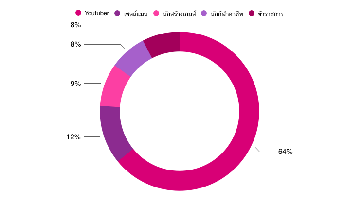 ผลสำรวจอาชีพในฝันของนักเรียนชายระดับชั้น ม.ต้น จำนวน 100 คน